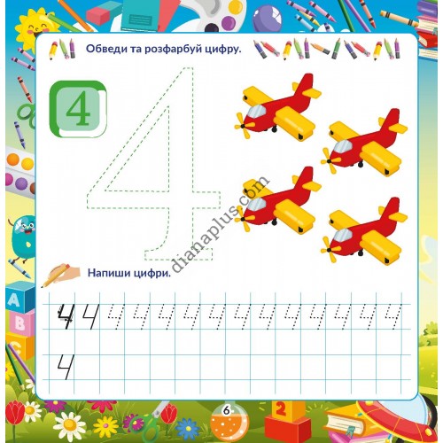У цьому випуску ваша дитина зможе потренуватися писати цифри у косу лінію, розвинути графічні навички та оволодіти каліграфією.