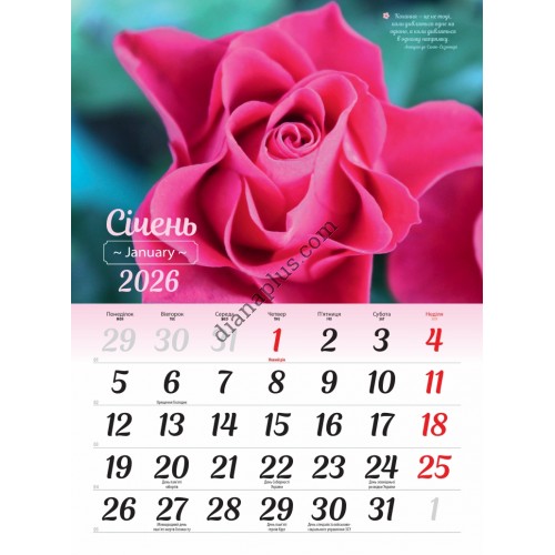 Календар Світовид на 2026 рік Flowers - це настінний перекидний календар із зображеннями барвистих та красивих квітів.