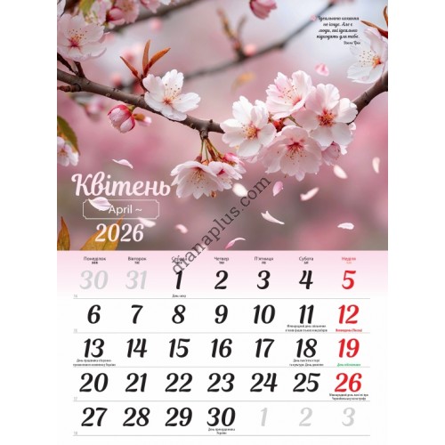 Календар містить назви державних свят та стане вам зручним помічником у подальшому плануванні.