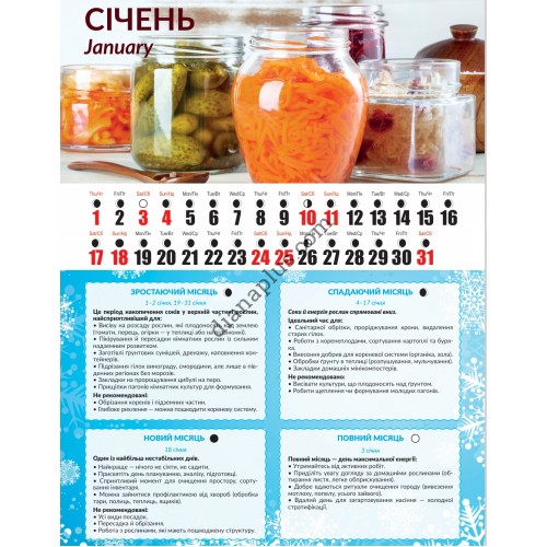 Цей календар містить місячний календар та корисні поради з городництва та садівництва.