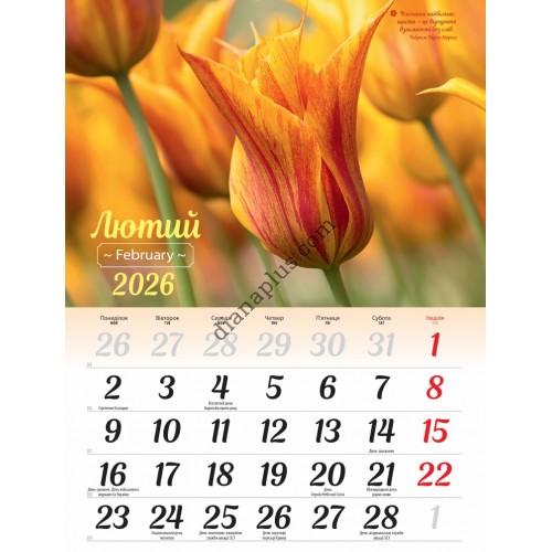 Календар Світовид на 2026 рік Flowers - це настінний перекидний календар із зображеннями барвистих та красивих квітів.