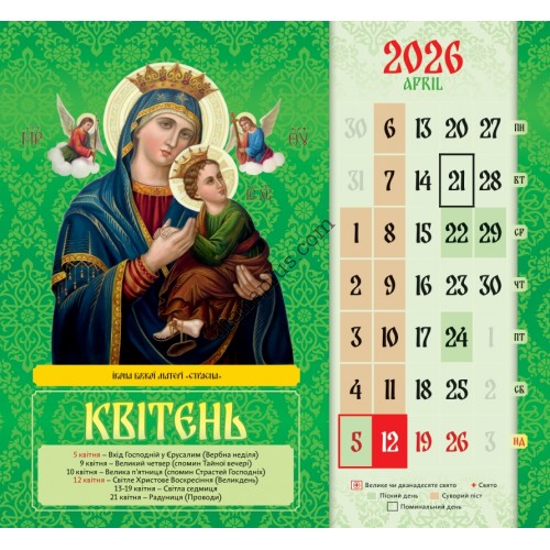 Нехай календар із зображенням Пресвятої Богородиці оберігає усіх покупців увесь рік!