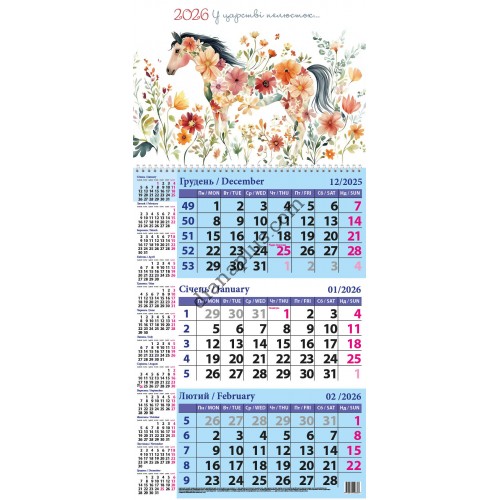 • Календар квартальний Казковий кінь у царстві пелюсток 2026