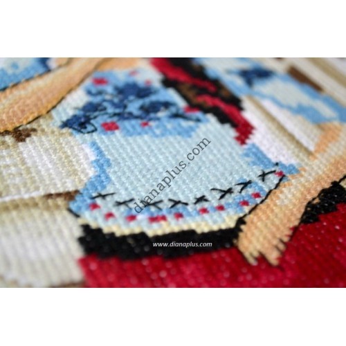 До набору входять: кольоровий зразок картини, схема (чорно-біла з символами), канва 55 стібків на 10..