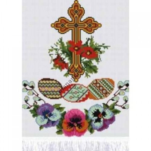 До набору входять: нитки муліне ПНК ім. Кірова, кольоровий зразок рушника, схема для вишивання (чорно-біла з символами), рушникове полотно, голка.
