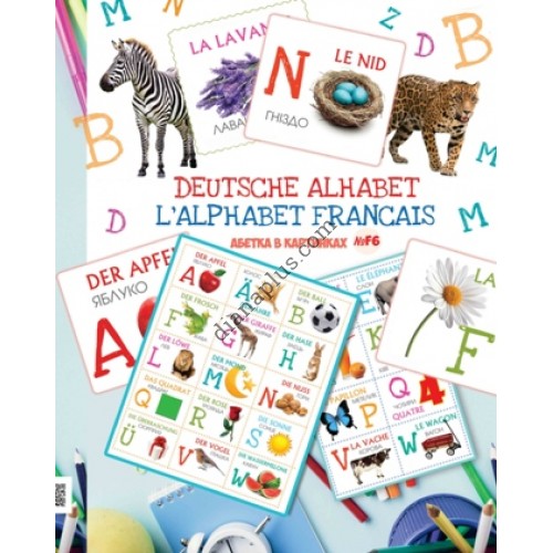 Вивчайте разом з вашою дитиною назви тварин, фруктів та предметів одразу німецькою та французькою мовою. Це легко та цікаво разом з абеткою з яскравими ілюстраціями наведених слів та транскрипцією для правильної вимови. Абетка містить: