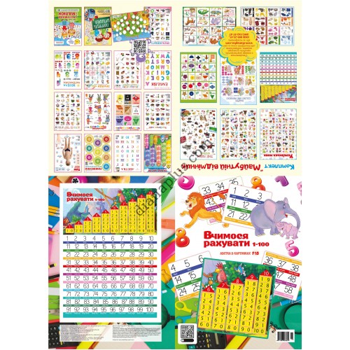 Ваша дитина не бажає вивчати математику? Барвисті  ілюстрації абетки містять  яскраві картинки цифр від 1 до 100 з назвами англійською мовою, що буде корисним для школярів молодших класів. Також на звороті абетки є ілюстрація «Майбутній відмінник» про навчальні видання для дітей.