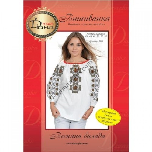 Схема для вишивання жіночої вишиванки "Весняна балада".Схема для вишиванки кольорова символьна, кольоровий зразок вишиванки, викрійка 44-54 розмірів.