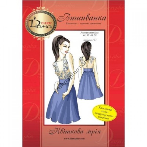 Схема для вишивання жіночої вишитої сукні "Квіткова мрія"Схема для вишиванки кольорова символьна, кольоровий зразок вишиванки, викрійка 44-50 розмірів.