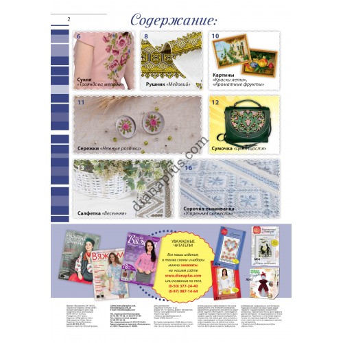 У новому номері журналу представлені вироби на різні тематики, різних рівнів складності. Для тих, хто любить вишивати картини, представлені нові розробки схем. Шанувальники вишивки на одязі знайдуть цікаву схему для вишивки сукні, сорочок, аксесуарів. А також - прекрасні рушники.